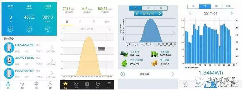 用户可通过监控关注查看每天发电量。数据清晰。