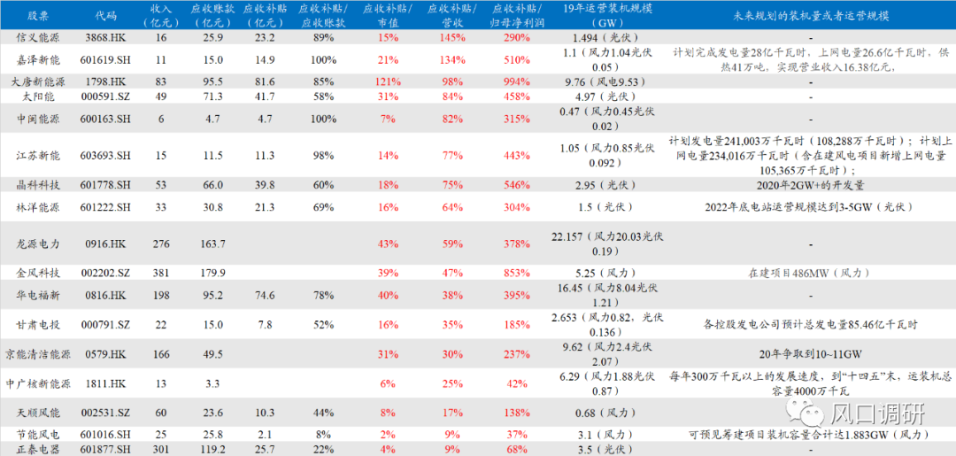 表:国内上市电站运营商补贴拖欠金额及运营规模